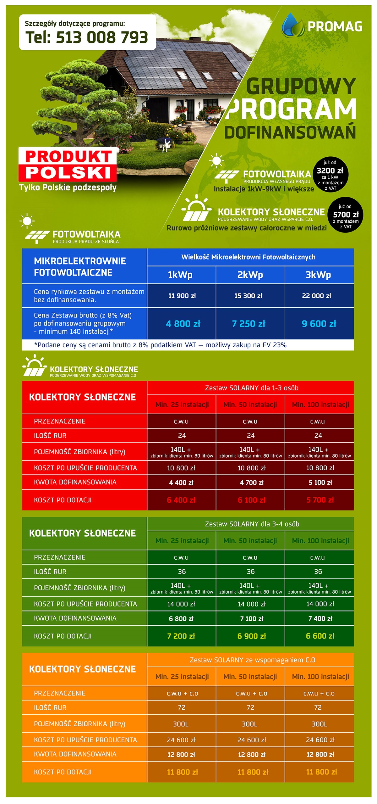 Informujemy, iż mieszkancy Gminy Lipowiec Kościelny mogą skorzystać z dotacji na instalacje solarne i fotowoltaiczne. Jesli będzie zainteresowanie tym tematem Gmina zorganizuje spotkanie mieszkańców z przedstawicielami firmy PROMAG, w celu omówienia możliwości pozyskania dofinansowania, zagadnień technicznych itp.