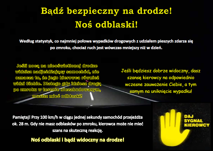 W związku z powyższym zachęcamy  pieszych i rowerzystów do używania elementów odblaskowych.