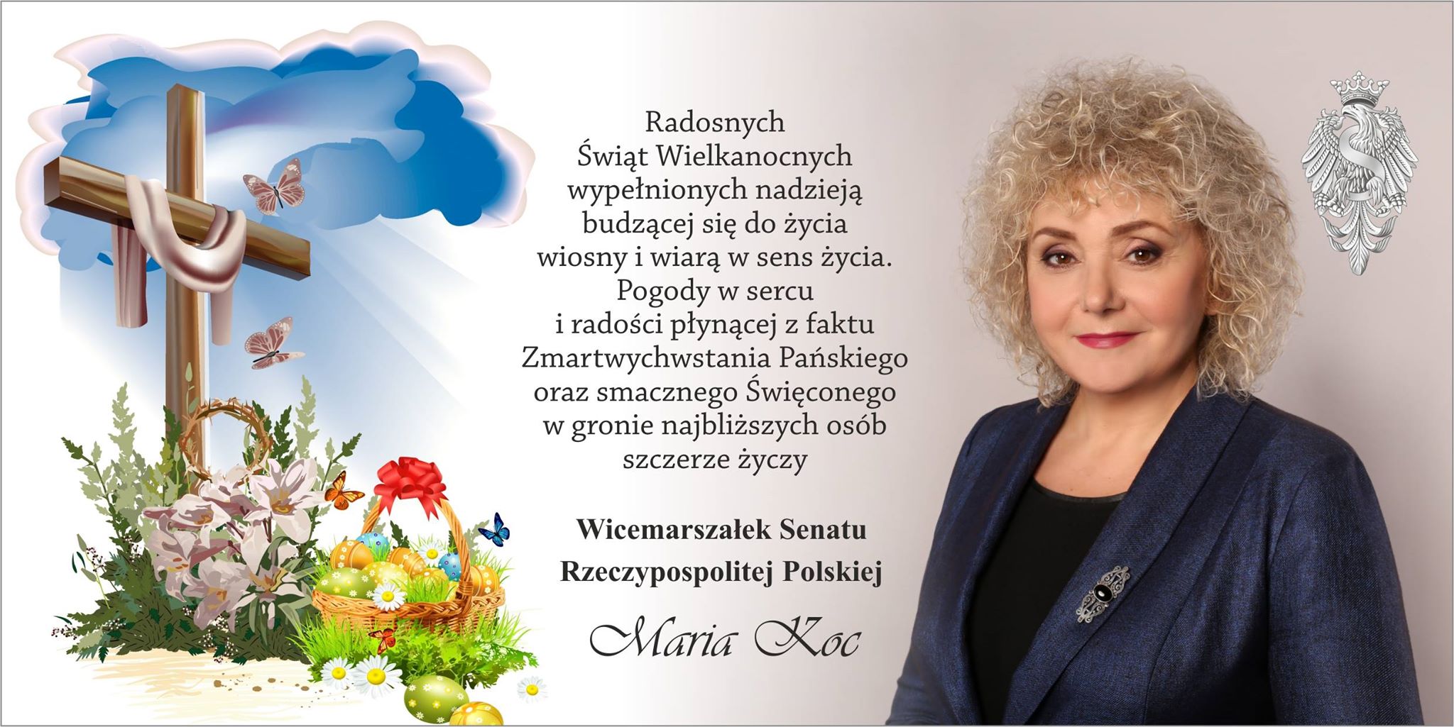 Przesyłam Państwu życzenia świąteczne, które kieruje Pani Wicemarszałek Senatu RP Maria Koc do mieszkańców Państwa terenu.