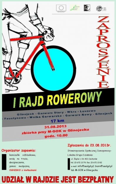 31.08- rajd rowerowy w Glinojecku (100 osób) Udział i atrakcje we wszystkich wydarzeniach są bezpłatne.