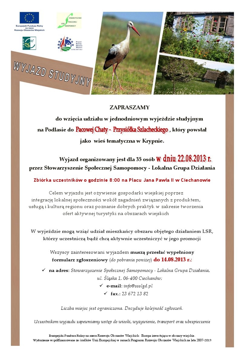22.08.- wyjazd studyjny do wioski tematycznej Pacowa Chata w Krypnie na Podlasiu (35 osób)